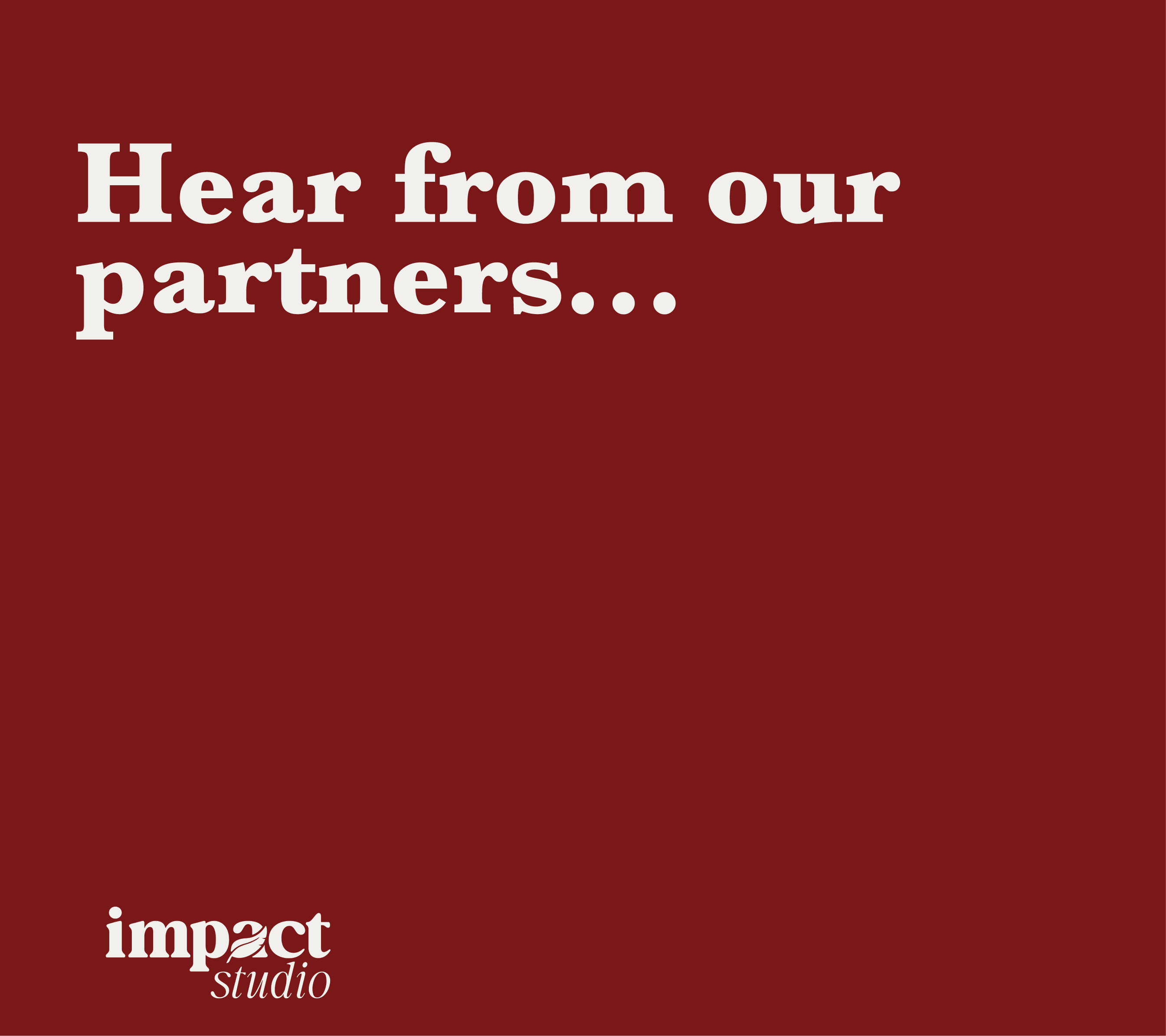 The strongest communities are built by those willing to build together. Let Impact Studio help build partnerships that multiply value.
